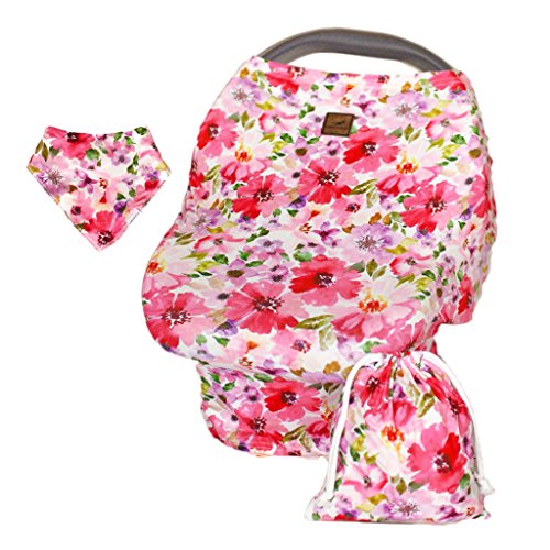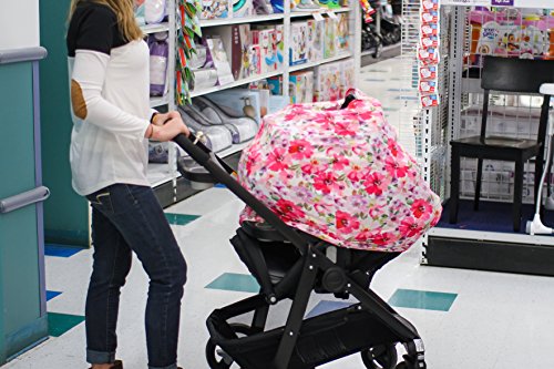 Baby Car Seat Cover, Nursing Cover for Breastfeeding Moms, Grocery Cart Cover, 4 in 1 Multi Use Stretchy Canopy for Baby Girls