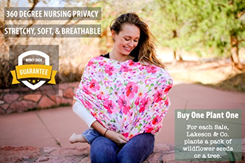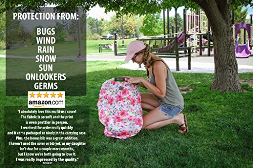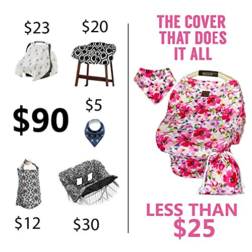 MOST STYLISH AND VERSATILE: Stretchy carseat canopy cover that doubles as a nursing cover for breastfeeding, stroller cover, high chair cover, shopping cart cover and infinity scarf. Designed for all weather use, fits most nursing mothers and car seats.