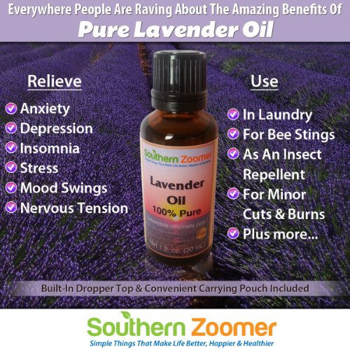 -. Binding : Health and Beauty -. Brand : Southern Zoomer -. Color : Clear -. EAN : 0820103308229 -. Feature : GUARANTEED TO BE THE BEST "TRUE LAVENDER" OR YOUR MONEY BACK. Features a 1 oz glass amber bottle to protect the Lavender Essential Oil. A euro dropper top to conveniently measure this highly concentrated, solvent free pure essential oil. Placed into a handy travel bag. Securely bubble wrapped to prevent leakage and breakage during shipping. PRODUCT ADVERTISED IS PRODUCT RECEIVED. Ships the same day. / THERAPEUTIC USES INCLUDE: Acne, Alopecia (Hair Loss), Anxiety, Asthma, Bee and Wasp Stings, Bronchial Problems, Depression, Eczema, Dermatitis, Flu Symp, Insect Repellent, Insomnia, Hay Fever, Headaches, Migraine, Minor Cuts & Burns, Mood Swings, Nervous Tension, Nightmares, PMS, Psoriasis, Rashes, Sleep Aid, Stress & Sunburn. Discover the amazing benefits when you download our Lavender Oil Guide. / PURIFY THE BODY & SPIRIT WHEN YOU ADD TO THE BATH OR A DIFFUSER. Our Lavender Oil has a lightly floral and soothing scent, one that most people find appealing over other brands that contain synthetics, other forms of adulteration, or are standarized oils that have been altered from their naturally balanced state. This lovely oil is whole, naturally balanced & pure; the kind preferred by Aromatherapists and Masseuse around the world. Mixes well with Organic Virgin Coconut & Sweet Almond Oils. / REDUCE STRESS, MOOD SWINGS & NERVOUS TENSION. Research at the University of Maryland Medical Center has confirmed that when this heavenly scent is inhaled it produces a slightly calming, soothing and sedative effects. Studies also report Lavender Essential Oil may be beneficial for insomnia, alopecia (hair loss), anxiety, stress and postoperative pain. / Lavender mixes with almost all oils but particularly well with Allspice, Anise, Basil, Bergamot, Citronella, Chamomile, Clary Sage, Clove, Eucalyptus, Frankincense, Geranium, Grapefruit, Hyssop, Jassmine, Juniper, Lemon, Lime, Tangerine, Patchouli, Peppermint, Pine, Rose, Rosemary, Spearmint, Tea Tree, and Thyme. -. IsAdultProduct : 0 -. Label : Southern Zoomer -. LegalDisclaimer : The above statements have not been evaluated by the FDA. This information is for educational purposes only. It is not intended to treat, cure, prevent or diagnose any diseases or conditions. If you are suffering from any disease, illness, or injury it is your responsibility to consult with your physician. -. Manufacturer : Southern Zoomer -. PackageQuantity : 1 -. ProductGroup : Health and Beauty -. ProductTypeName : HEALTH_PERSONAL_CARE -. Publisher : Southern Zoomer -. Size : 1 Ounces -. Studio : Southern Zoomer -. Title : Southern Zoomer Pure Lavender Essential Oil - True 100% Lavandula Officinalis - Free ebook download of Best Uses & Benefits - For Aromatherapy - Air Freshner - Bath - Lotion - Diffuser - Hair - Burns - Nails - Relaxation - Scars - Sleep Aid - Laundry -. UPC : 820103308229