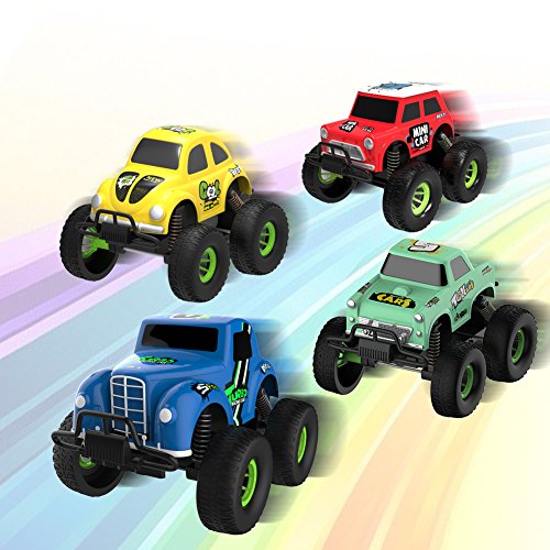 Monster trucks mini 4 pcs - friction powered pull back monster jam trucks and cars that make great stocking stuffers.