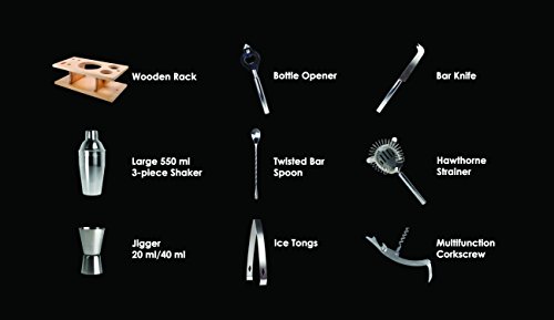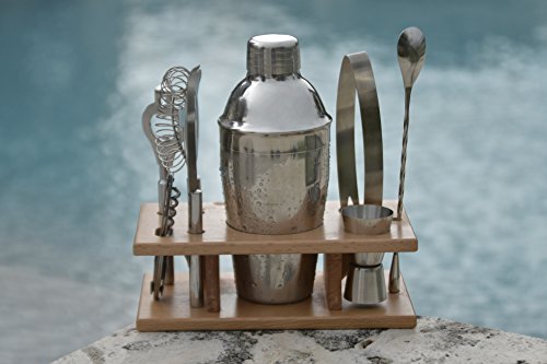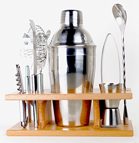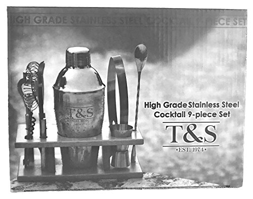 테일러& Sons 9피스 스테인레스 스틸 bartender 세트with Wooden Base키친 악세사리 칵테일 바트―루셋토