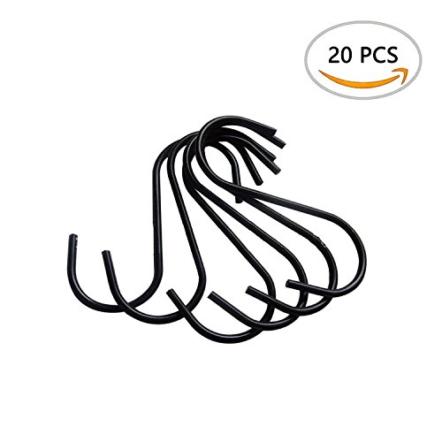A Little Lemon 20 PCS Black Color Heavy-duty Stestallation Hardware Designel S-hooks for Plants, Towels with PVC Coating , Gardening Tools,black Enamel Coated Metal, Holds up to 40 Lbs.