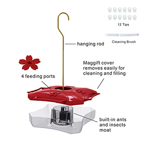 Maggift 12 oz Hanging Hummingbird Feeder with Four Feeding Ports