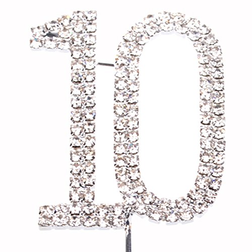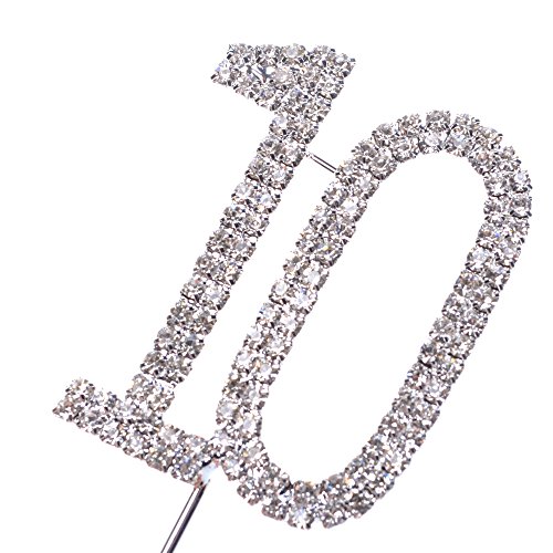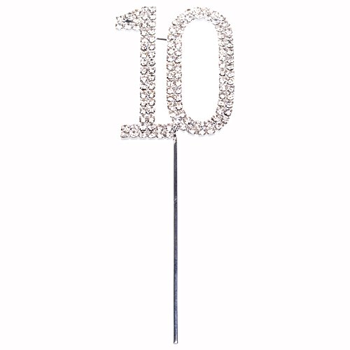 COSMOS Rhinestone Metal Number 10 Birthday 10th Anniversary Cake Topper, Silver Tone Color
