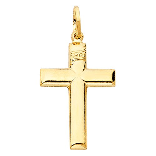 -. Binding : Jewelry -. Brand : The World Jewelry Center -. Department : womens -. Feature : Size : 25.5 mm x 17.5 mm / Guaranteed 14k Real Gold and "14k" Stamped / NO gold plated or filled / "NO Question Asked" 30-day Return Policy. / Promptly Packaged with Free Gift Box -. ProductGroup : Jewelry -. ProductTypeName : FASHIONNECKLACEBRACELETANKLET -. Title : 14k Yellow Gold Religious Cross Charm Pendant