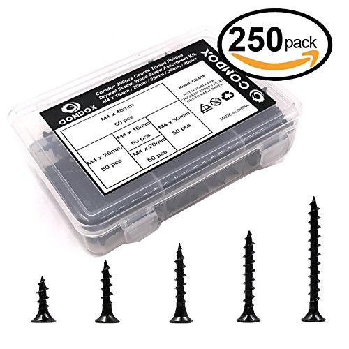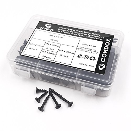 - ●Set includes 5 most-used sizes: 50 pieces M4x16mm, 50 pieces M4x20mm, 50 pieces M4x25mm, 50 pieces M4x30mm, 50 pieces M4x40mm. Recommended by Professional Contractors, builders and DIY homeowners