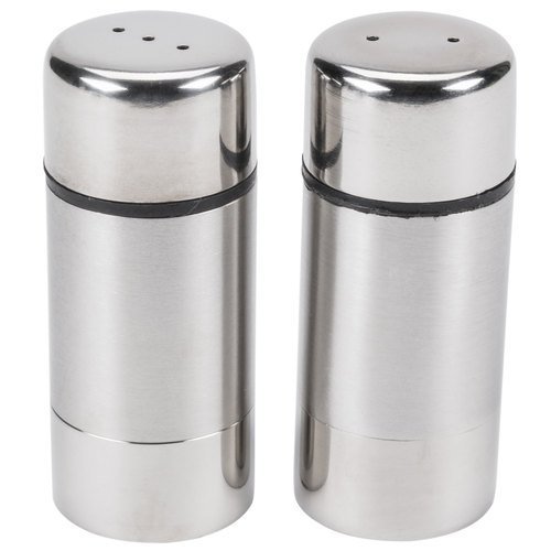 American Metalcraft SP29 American Metalcraft SP29 Salt and Pepper Shaker Set, Round, Stainless Steel, 3" Height, Stainless Steel,