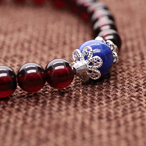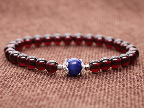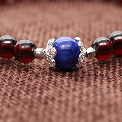색미가 진한 레드 컬러의 garnet와 개성적이다블루컬러의 조개 자 나이트를 편성했 아주 멋진 팔찌입니다.