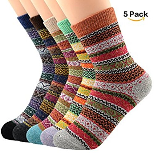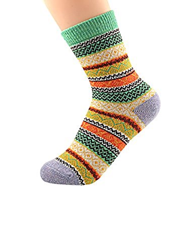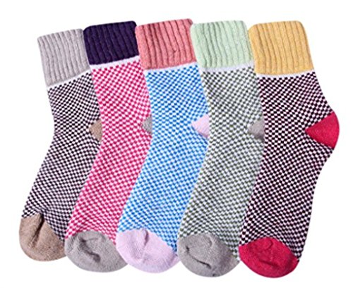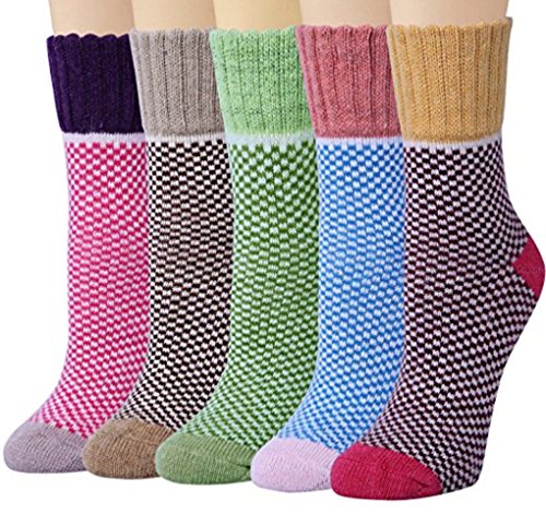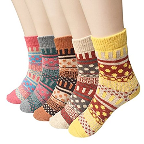 -. Feature : Free size 23 to 25cm, suitable for women US shoe size 5 to 9, They are elastic and perfectly make it suitable for your feet. / Come with 5 pairs thick knitting cotton socks, various colors can easily follow your daily collocation. / Stylish and smart wearing these crew length vintage style knit socks, perfect for favorite boots, clogs, loafers or sneakers. / Bright P.R.Ints makes colorful socks cool and fun, It's a great gift in winter for family members, friends and anyone you love. / Vintage and trendy design warm snug socks will put a fun finishing touch on your outfits. You can wear them as office, school, outdoor, sports, home, work, easily follow your daily collocation or any occasion.