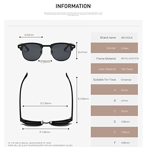 Kimorn Polarisierte Sonnenbrille Unisex Retro Halb-Randlos Rahmen Klassisch Eyewear AE0550