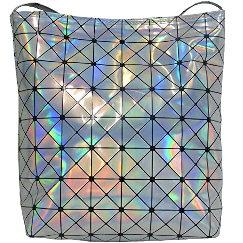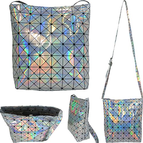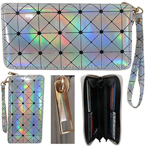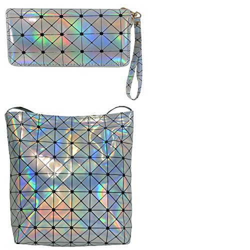 Geometric Holographic purse bag metallic with Wallet PU leather chain for women Bundle