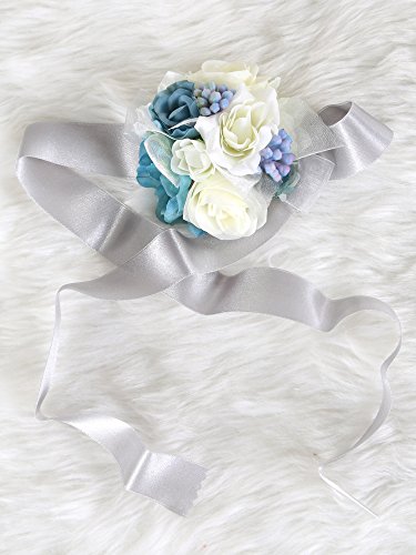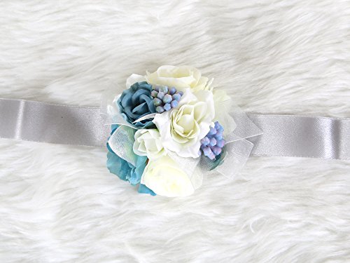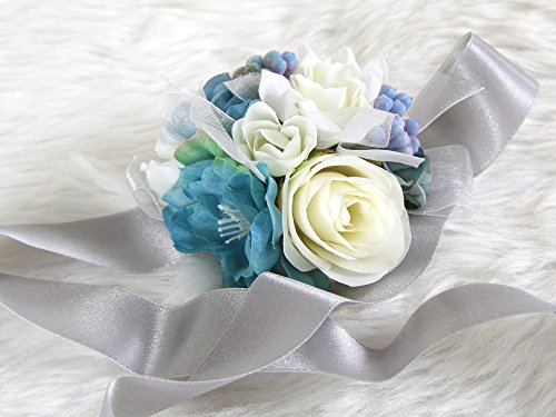 Pretty bridesmaid wrist Corsage Rose Flower Wedding Bridal (Blue-Grey)