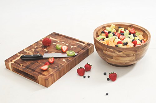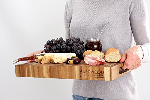 Hardwood Chef Premium Thick Acacia Wood End Grain Cutting Board Butcher Block with Groove, 16 x 12 x 1 3/4 in Incredible Cheese & Appetizer Serving Platter | For Chopping