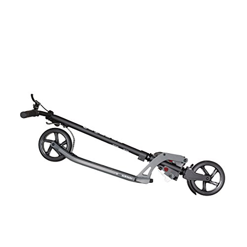 -. Brand : Globber Scooters -. Feature : PATENTED FOLDING MECHANISM: that locks the handlebars to the rear brake for easy carrying. LOCK THE HANDBRAKE: to ensure scooter does not roll away when leaned up against the wall. OR EASILY PUT DOWN: the kick stand that holds the scooter uP.R.Ight in the riding position / EXTRA WIDE DECK: at 5.5" wide and 3" from the ground. TWO BRAKES: one with pull lever on the handlebars and and extra long rear brake / RIGID EXTRUDED ALUMINUM FRAME: creates a solid base for adult riders, new and advanced. MUDGUARDS: to protect against splashes / HANDLEBARS: fixed at 35.5" high to accomodate riders of all sizes (handlebars 38.75" from the ground). FLEXIBLE HANDLEBAR GRIPS: with dual-injection material for more comfort and resistance / LARGE 180 mm WHEELS: made of high rebound and high quality PU with nylon cores, mounted on ABEC 7 bearings -. IsAutographed : 0 -. IsMemorabilia : 0 -. Label : Globber Scooters -. Manufacturer : Globber Scooters -. MPN : GlobberAdult -. PartNumber : GlobberAdult -. ProductGroup : Sports -. ProductTypeName : OUTDOOR_RECREATION_PRODUCT -. Publisher : Globber Scooters -. Studio : Globber Scooters -. Title : Globber One K 180 Adult Folding Scooter with Handbrake