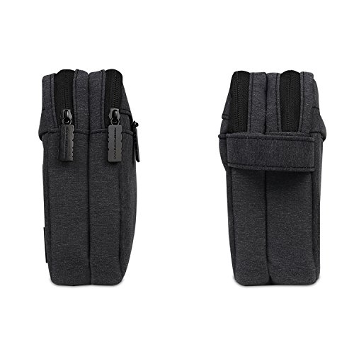 Elastic loops and many pockets to hold various items like cables, cell phones, passport, cards, pens, cosmetics and etc; Enough interior pockets keep your camero, hard drive, adapters, cell phone, card, cash, passport, etc; And more, this organizer bag can hold your iPad MINI and tablet (up to 8 inch). It is Universal !!!