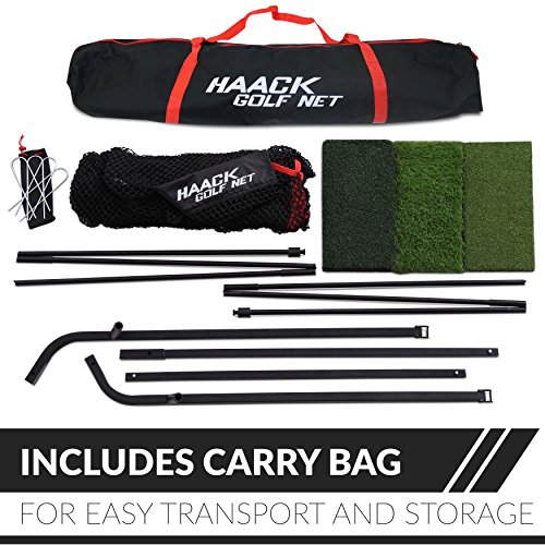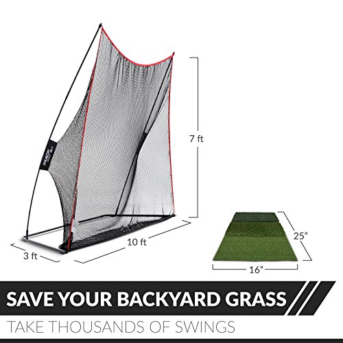 Bundle: Haack Golf Net and Tri-Turf Mat. The Haack Golf Net was designed and endorsed by famed college golf coach Chris Haack who has taught several of the PGA Professionals currently on tour. We created what Coach Haack calls "the last golf net you will ever need". The Haack net is the perfect combination of size, durability, affordability and easy set up. We also incorporate our signature ball return feature. The Haack Golf Net measures 10ft W x 7ft H x 3 ft D. The ball roll back feature gently returns the ball. Set up is quick and easy. Most importantly, Rukket Sports stands behind its products. If you ever have any questions or concerns please contact us at any time and we will make sure that you are completely satisfied with your purchase. Thank you for your support. We look forward to hearing from you! (Side wings available as add-on purchase). The Rukket Mat Attack Tri-Turf portable golf mat is the perfect mat for the quick setup on the go golfer. The mat size is 40x62 cm, with 16mm fairway turf, 35mm rough turf, 35mm tee turf, and only 2mm rubber base. The ball will not be sitting to high so you will not have to choke down on your golf club nearly as much as competitors mats. If you need any help please reach out to us directly.Feature