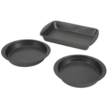 Set of 3 Mainstays Non-Stick Cake Pan Set Rectangular 13" x 9" x 2" & Two - 9" x 1.5" Round Pans (3)