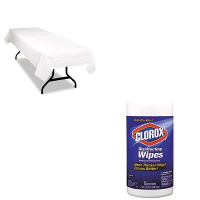 Studio : Tablemate Publisher : Tablemate Binding : Office Product Product Description lt;stronggt;TBLPT549WHlt;/stronggt;lt;BR/gt;Tablemate Table Set Poly Tissue Table Coverlt;BR/gt;This rectangular, disposable table cover is made of poly/tissue. Shape: Rectangular Materials: Poly/Tissue Colors: White.lt;BR/gt;lt;BR/gt;lt;stronggt;COX01761EAlt;/stronggt;lt;BR/gt;Tablemate Table Set Poly Tissue Table Coverlt;BR/gt;One of America's favorite disinfecting wipeskills 99.9% of common illness-causing germs, including Staphylococcus aureus staph, Salmonella enterica, Escherichia coli E. coli and viruses that can cause colds and flu. Ready-to-use premoistened wipes clean and disinfect. Just wipe, toss and you're done. One towel goes a long way. Bleach-free. Towel/Wipe Type: Cleaner/Detergent Wet Wipe Application: Bathrooms Gyms Hospitals Kitchens Offices Schools Applicable Material: Acrylic Ceramic Chrome Fiberglass Glass Metal Plastic Tile Vinyl Wood Materials: Non-Woven Fiber. 0