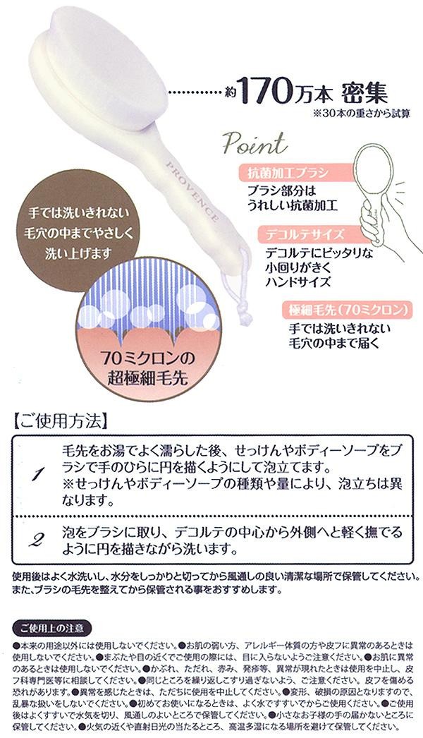 | デコルテにピッタリな小回りがきくハンドサイズのブラシです。手では洗えない毛穴の奥までスッキリ洗浄!!濃密で贅沢なバスタイムが味わえます。場所をとらず吊り下げられる紐付きで、保管・乾燥もラクラクです♪ |