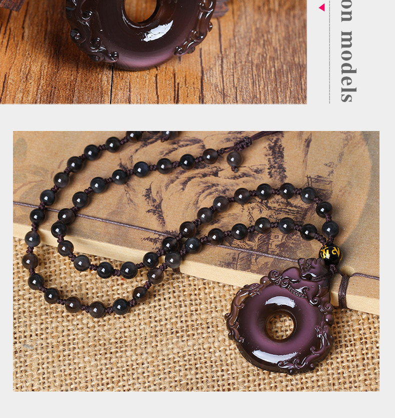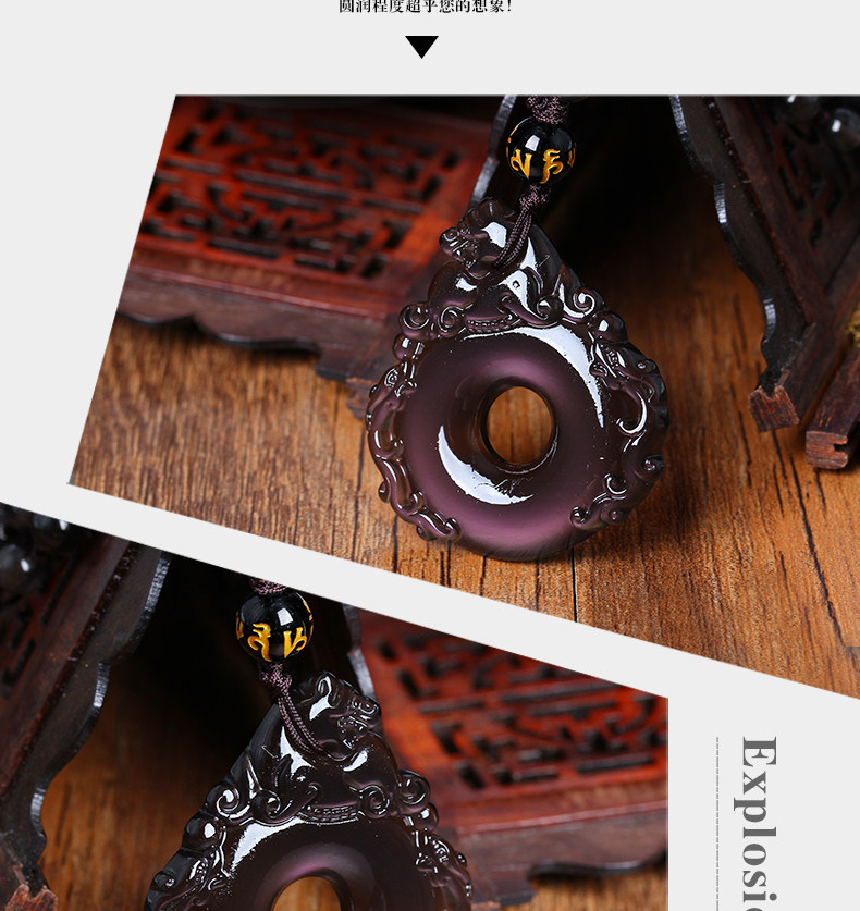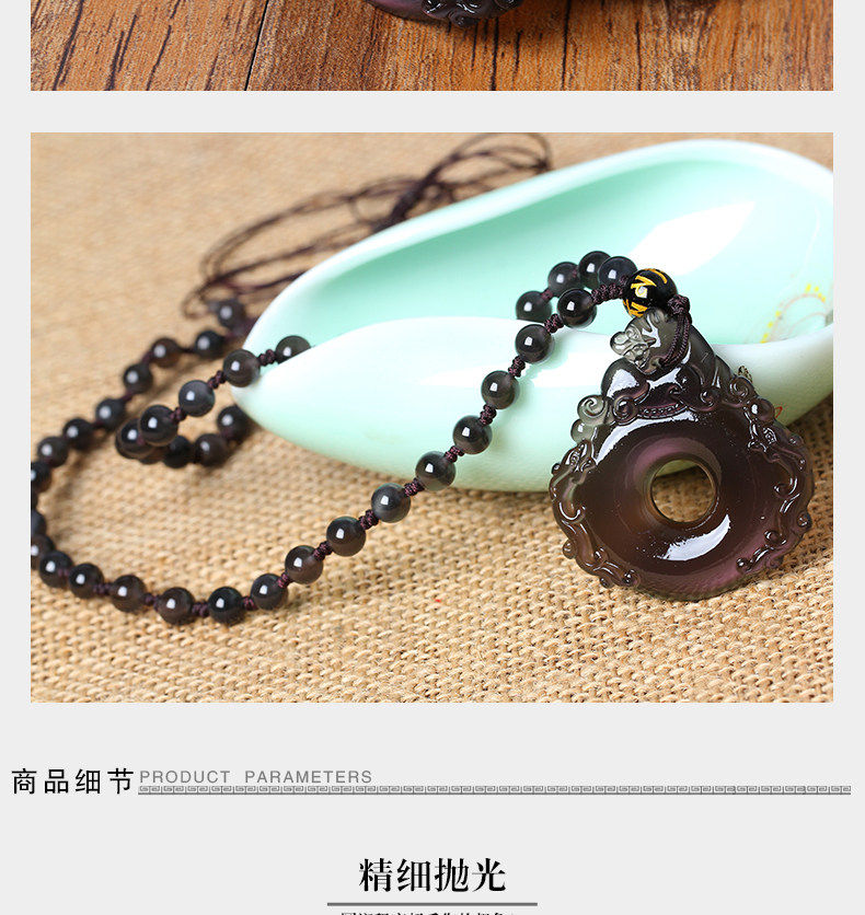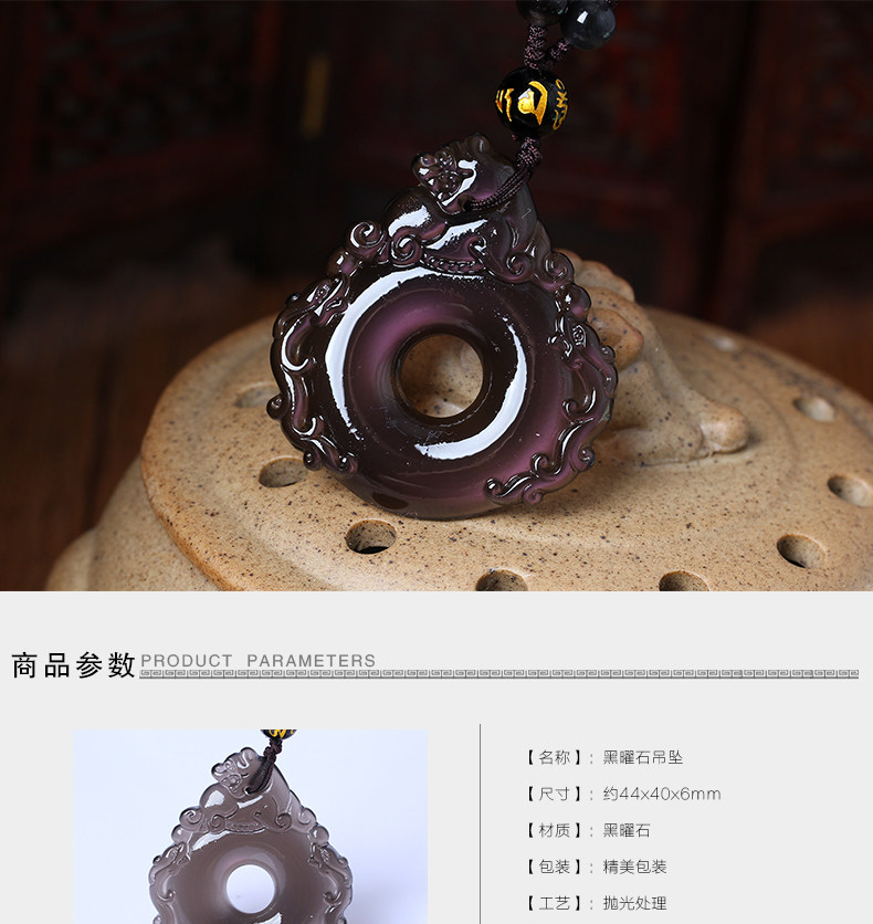 开光财福双犬狮兔送福冰晶黑曜石吊坠 属狗吉祥开运物项坠