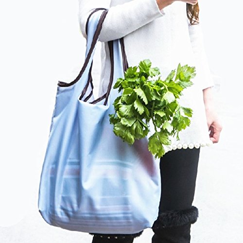 HOMEFUN Super Strong Ripstop Nylon Foldable Reusable Bag Grocery Shopping Tote Bag with Sachet Pouch (Blue)