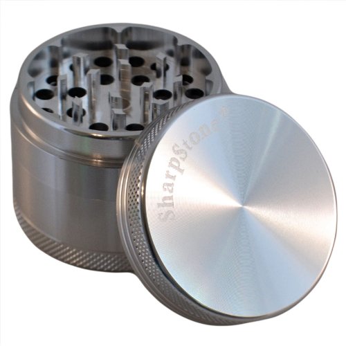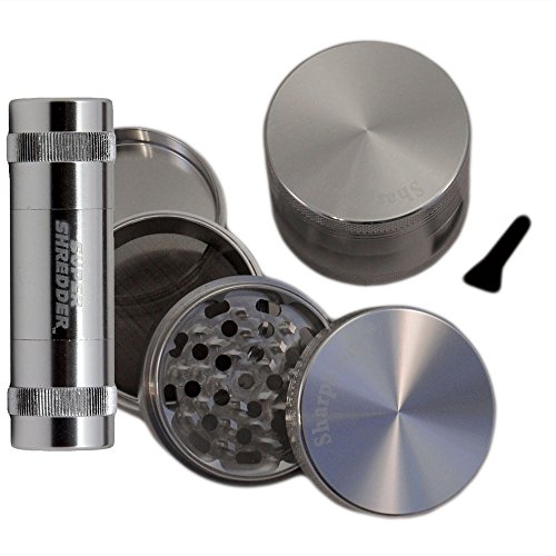 2.5" - Silver 4 Piece SharpStone® Herb Grinder + SUPER SHREDDER Pollen Press