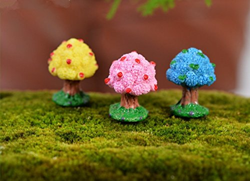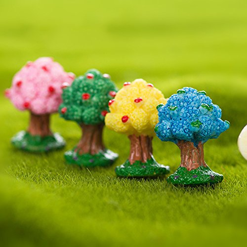 OPZO Miniature Garden Moss Landscape Decoration Artificial Tree DIY Decorates Ornaments Micro Landscape Ornaments Fairy Garden Accessories - 4PCS Blue Yellow Green Pink