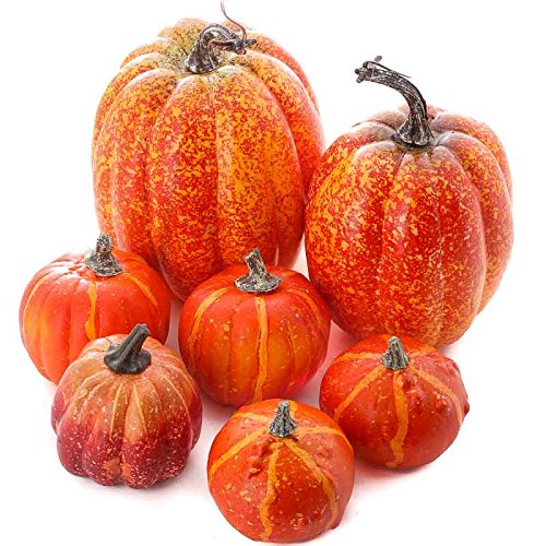Factory Direct Craft® Package of 7 Assorted Artificial Pumpkins for Halloween, Fall and Thanksgiving Decorating