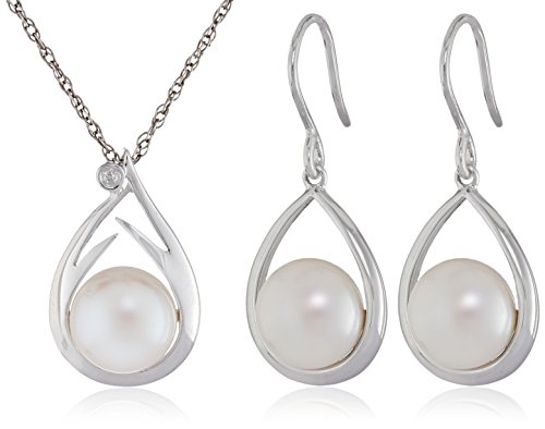 -. Binding : Jewelry -. Brand : Amazon Collection -. Color : White -. Department : womens -. EAN : 0805755426415 -. Feature : Set of earrings and necklace / Freshwater Cultured / Imported / The Pendant has an 8-8.5mm pearl / The earrings have 9-9.5mm pearls / All our diamond suppliers confirm that they comply with the Kimberley Process to ensure that their diamonds are conflict free. -. Label : China Pearl, Inc. -. Manufacturer : China Pearl, Inc. -. Model : QSET-10722-AM -. MPN : QSET-10722-AM -. PartNumber : QSET-10722-AM -. ProductGroup : Jewelry -. ProductTypeName : FINEOTHER -. Publisher : China Pearl, Inc. -. Studio : China Pearl, Inc. -. Title : Sterling Silver Freshwater Cultured Pearl and Diamond Pendant Necklace and Earrings Jewelry Set" -. UPC : 805755426415