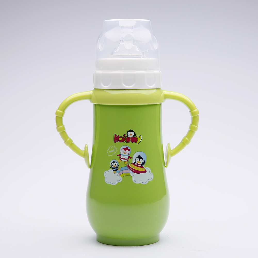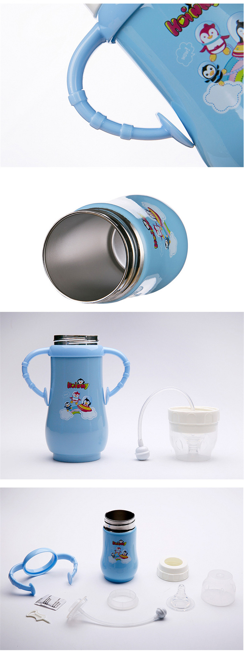Item specifics:Wide mouth large gourd shaped stainless steel heat insulation milk bottle