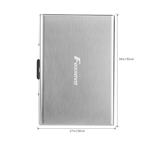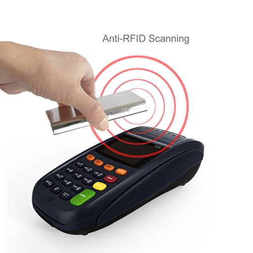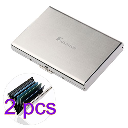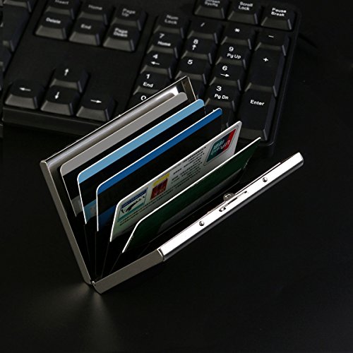 - Color: Silver. - Material: Stainless Steel, PVC. - Size: About 9.6 * 6.4cm/ 3.78 * 2.52 inch(L * W). - Thickness: About 1.2cm/ 0.47 inch. - Thin and Lightweight: This thin credit card holder is only 12mm thick, it is hard to be thinner while has 6 card slots simultaneously. Perfect for people who don't like go out with a bulky traditional wallets. - 6 Comfortable Slots: High quality PVC accordion design slots, easy for your cards in and out. Fits various types of cards: ID Card, Credit Card, Driver's Licenses, Medical Cards, etc. - Card-protector: The RFID protection card holder can perfectly block unwanted RFID scanners. Designed to Block RFID Readers from scanning your credit cards, debit cards, banking information, smartcards, RFID driver's licenses and other RFID cards. -------------------------------------------------------------------- Package Including
