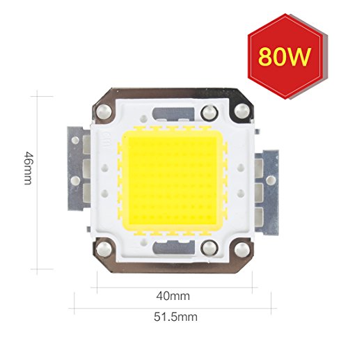 Studio : uxcell Publisher : uxcell Binding : Misc. Product Description Description: Specifications(LED Chip): Wattage:80W? Input Voltage:DC 31-36V? Forward Current(IF):2400-2800mA? Lumen:5600-6800lm Light Color:Warm White? Wave Length (Color Temp):3000K-3500K? Life span:50,000 hours? Size:51.5 x 46mm/2 x 1.8 Inch(L*W)? Application:For Led Floodlight /Spotlight DIY