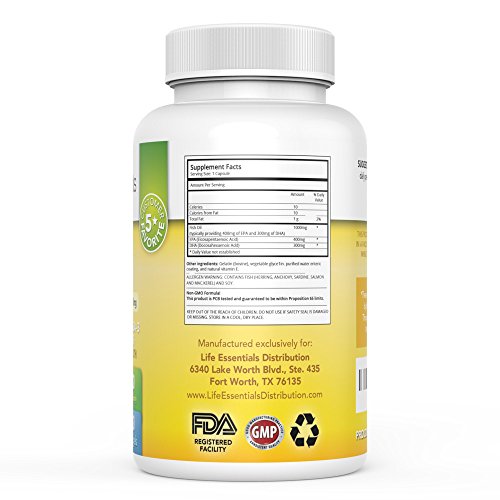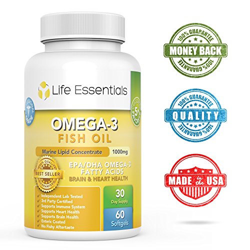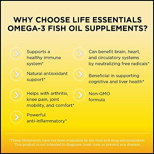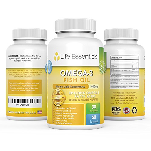 Life Essentials Omega 3 Fish Oil contains EPA and DHA, two Omega-3 fatty acids that help support and maintain the health of your cardiovascular system* Omega-3 fatty acids are considered "good" fats important for cellular, heart and metabolic health and help maintain triglyceride levels already within a normal range* Our capsules have enteric coating for better absorption and no fishy aftertaste. Life essentials Omega 3 Fish Oil supplements provide 1000 mcg to help ensure the daily need for this essential nutrient is met. 100% Drug Free! SUPERIOR PERFORMANCE!