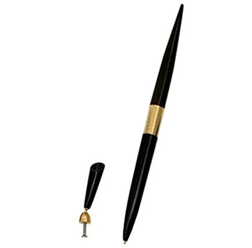 -. Feature : Black Bullet Pen/Gold Band 6" & Black Screw On Funnel Base with Screw / Pen has black ink. / Funnel is black plastic. / Manufactured for EBINGERS PLACE.