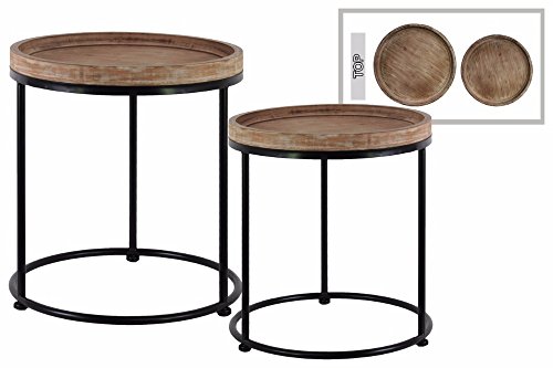 Benzara Wood Nesting Accent 3 Metal Leg Tables, Brown