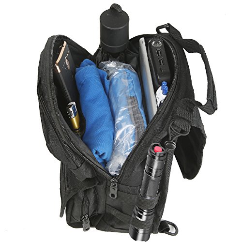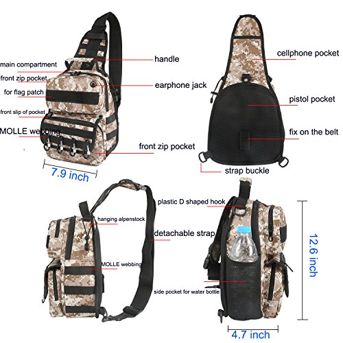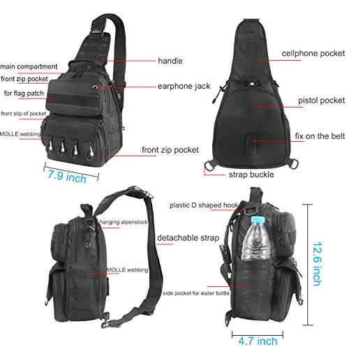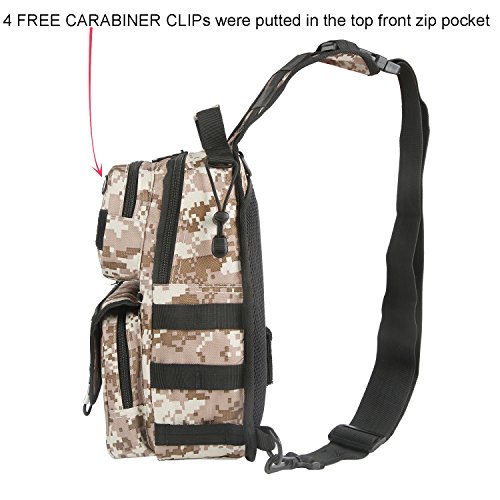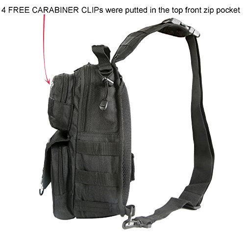 -. Feature : ① Bigger Size Than Others' - Upgraded to 12.6x7.9x4.7 inch (H x W x D) with total 10 different function pockets, keep your EDC accessories organized and easy to be found. / ② Versatile 3 Ways Carrying Everyday Bag - Shoulder bag, rover sling pack (chest-back, left-right sling) and hand carry. / ③ Functions - Suitable for everyday carry, working, hiking, trekking, travelling, day trips, camping, walking, cycling, hunting, fishing, outdoor sports, military tactical use, diaper bag, gift idea and more. / ④ Humanization Designs - a, Wide shoulder strap released the pressure on shoulder ; b, MOLLE external expansion system, designed to be used in combination with equipment by 4 FREE CARABINER CLIPs (that were putted in the front zip pocket); c, Added a laptop divider in the main compartment, can fit a 9.7" iPad in; d, 1 x snap closure concealed pocket on the back panel allows to conceal important things with easy access and draw. / ⑤ Quality Made- 600 dense polyester fabric, solid stitching, reinforced with bar tacking, equipped with premium quality zippers, no worry about zipper stuck, built for last long.