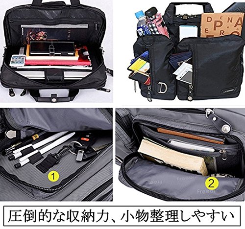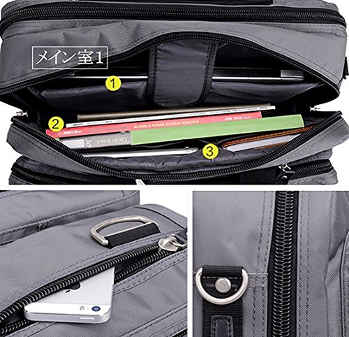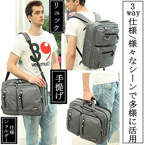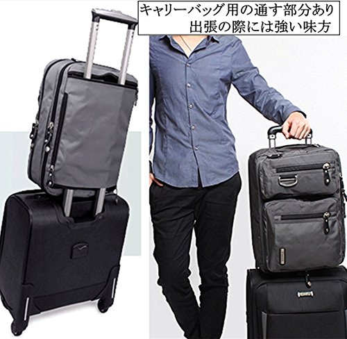 ■11.6から15.6インチまでPC収納カバン(41L*31H*17W cm) / ■手提げタイプ、ショルダータイプ、リュックタイプの3通りの持ち運び方が選べる3WAYビジネスバッグです。ショルダーベルトは取り外しが可能です。また、リュックベルトは普段使用しないときにはバッグの中に収納できます / ■マチはファスナーで調節が可能なので、荷物が多くないときはスリムな状態を保つことができます。出張に必要な衣類なども収納可能で、2~3泊程度の短期出張に最適です。 / ■メイン収納部や小物ポケットなど、合計11個のポケットがついているので、手帳や電卓やペンなどのビジネスに必須のツールを整理整頓することができます。