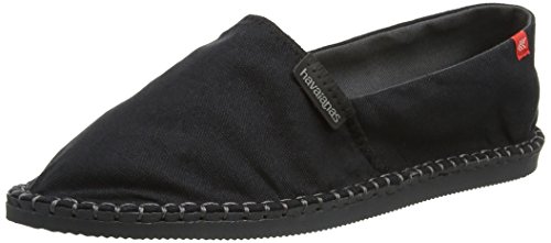 Studio : Havaianas Publisher : Havaianas Binding : Apparel Product Description Offered by Havaianas, the Origine III Espadrilles in a Black colour. With branding around the lip and stitch detailing near the lip and sole, these canvas espadrilles provide comfort, function and fashion. They feature a textile upper and rubber outsole. Sizing conversion: Brazil 39 = UK 07, Brazil 40 = UK 08, Brazil 41 = UK 09, Brazil 42 = UK 10, Brazil 43 = UK 11. 0