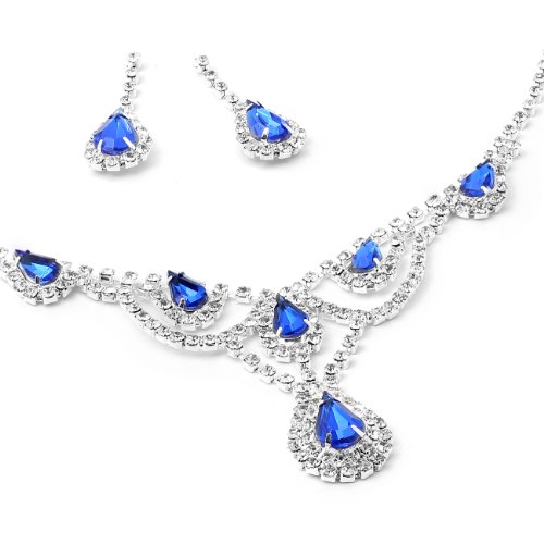 - Title : Topwholesalejewel Silver Crystal Drapes with Sapphire Teardrop Accents Necklace & Matching Dangle Earrings Jewelry Set