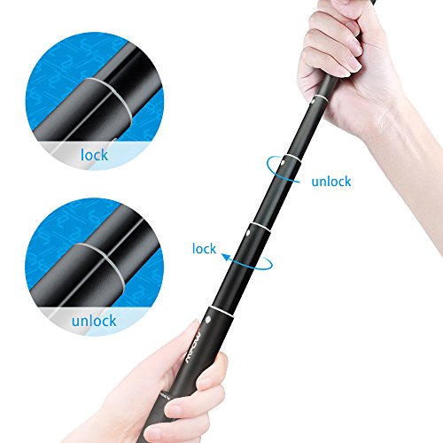 Extend or retract Mpow selfie stick to any length, and then twist it to lock/unlock through holding both ends of the selfie stick.