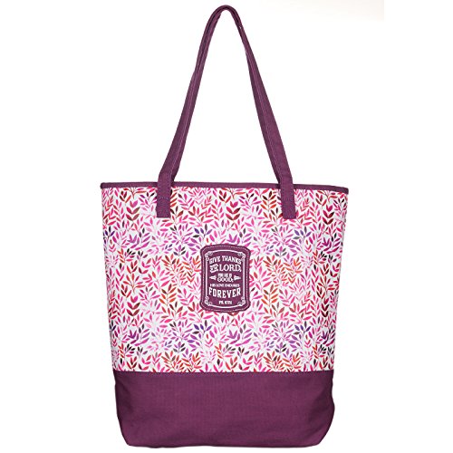 -. Title : Plum Small P.R.Ints Canvas Tote Bag - Psalm 107:1