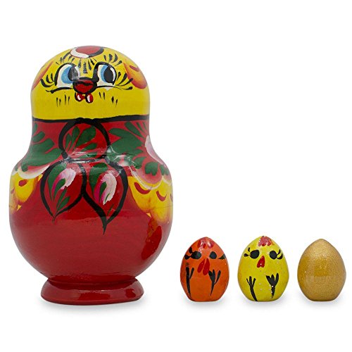 -. Title : 2.75" Set of 4 Chicken with Easter Eggs Russian Nesting Doll
