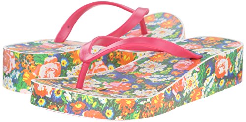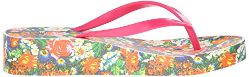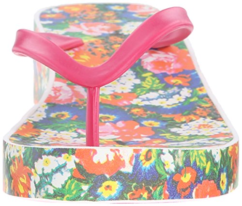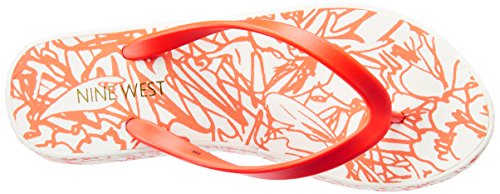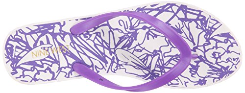 Casual thong sandal featuring printed platform and Nine West logo on footbed