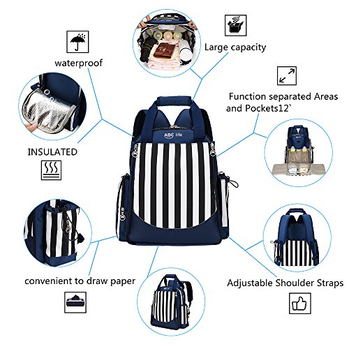 Diaper Bag Backpack, Mom Bag, Large Capacity Baby Bag, ABC life Nursing Bag with Large Changing...