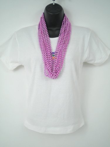 33 inch 7mm Round Metallic Pink Mardi Gras Beads - 6 Dozen (72 necklaces) Imported.