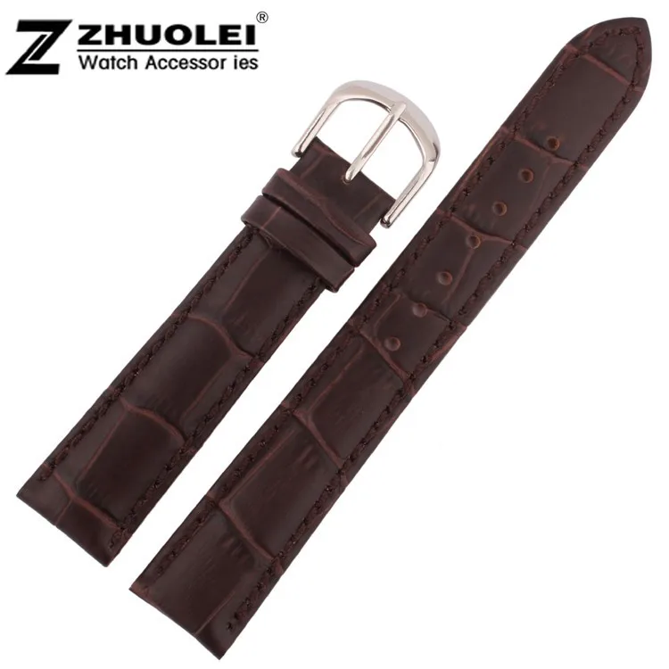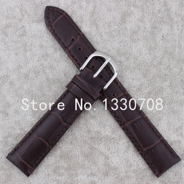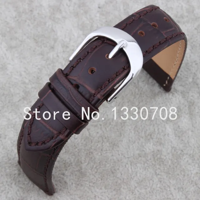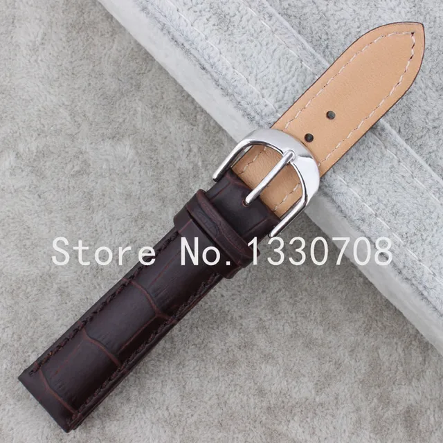 | [해외] 20 미리메터 도매 가격 새로운 최고 품질 브라운 정품 가죽 시계 스트랩 손목 시계 실버 스테인레스 스틸 버클 |