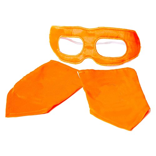 These orange superhero accessories will complete any superhero costume. The set comes with one eye mask and two powerbands that will help every superhero save the day.Feature