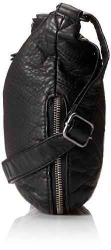 - Washed, faux leather cross body with piecing detail, exposed metal zippers, adjustable strap, zip top closure, printed lining and metal logo bar tab