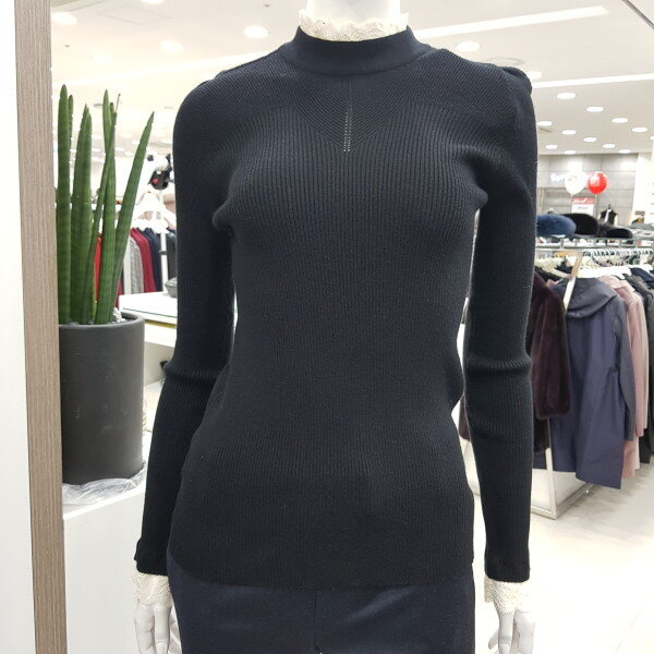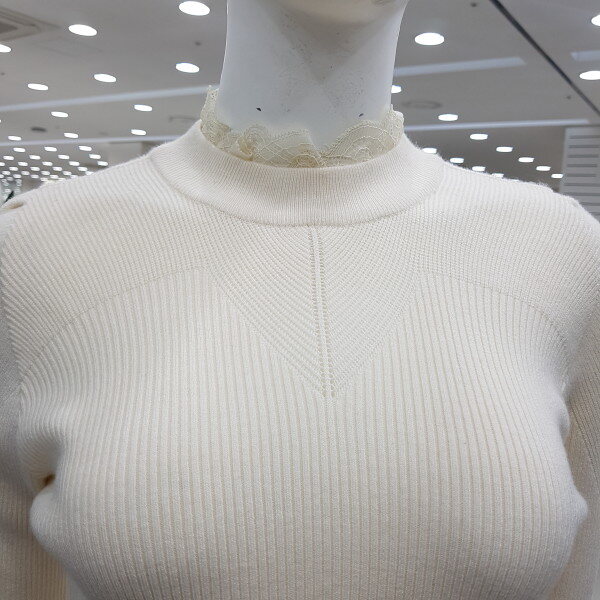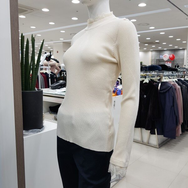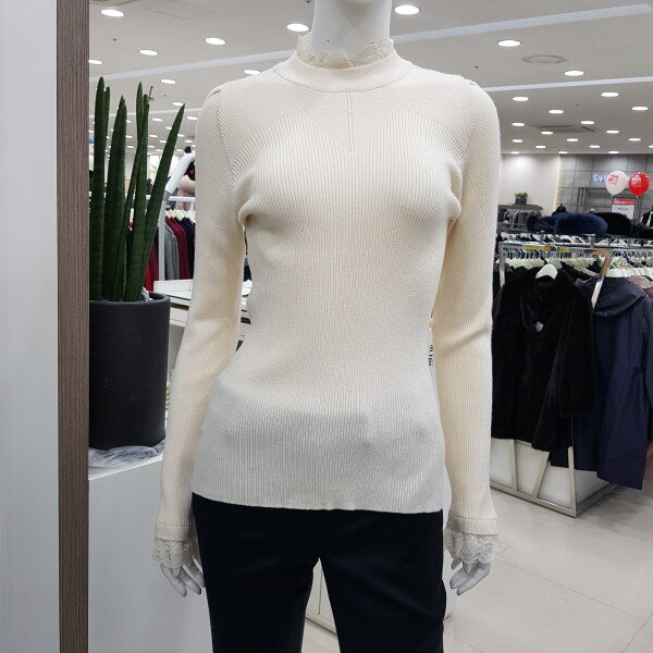 레이스 목 골 지 티셔츠핏트감이 있으며 넥라인과 소매라인 끝단에 레이스를 달아 여성스럽게 ~~