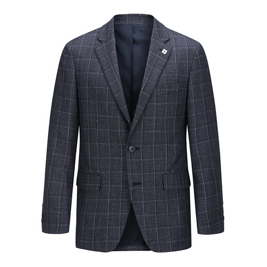 - 모던한 체크 패턴 디자인이 돋보이는 남성 자켓.